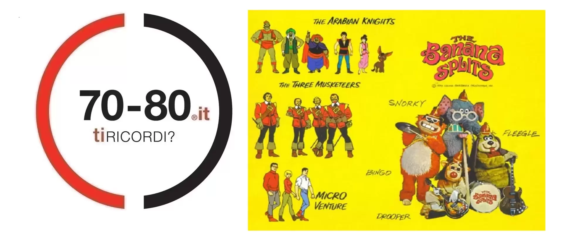 The Banana Splits adventure hour, questo il titolo negli Usa, fu trasmesso il sabato mattina dal 7 settembre 1968 fino al 5 settembre 1970 per un totale di 2 stagioni e 31 episodi, sponsorizzato dalla marca di cereali Kellogg’s.